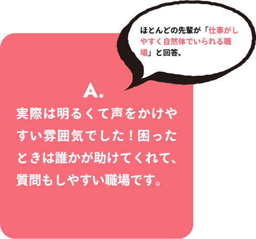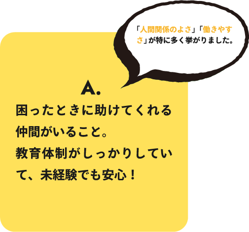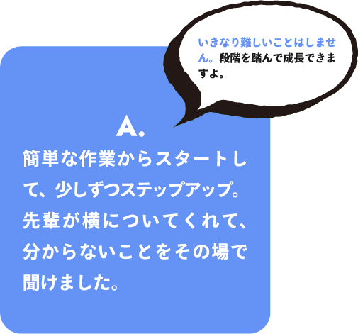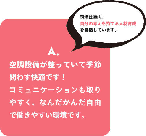 それを一緒に考え、形にしていく職場です。そのために必要な道具や仕組みは、会社としてしっかり整えます。